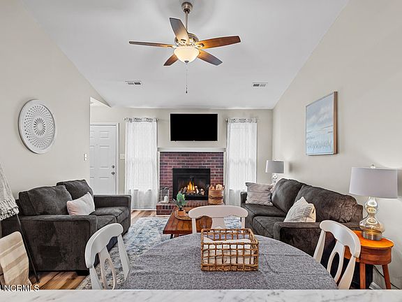 Charming Duplex minutes from Camp Lejeune, shopping, and restaurants! This tastefully decorated two bedroom, one bathroom is sure to impress. The living space boasts LVP flooring throughout and a wood burning fireplace. The kitchen has lots of cabinet space and a cozy dining nook. The backyard has a utility closet for storage and a fenced in back patio. Roof was installed in 2018. The property is currently a short term furnished rental and all furnishings are negotiable. Thank you for showing!