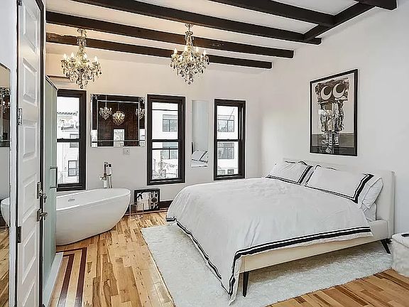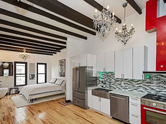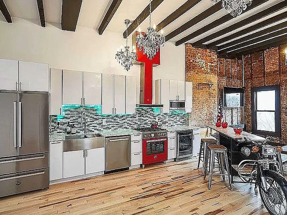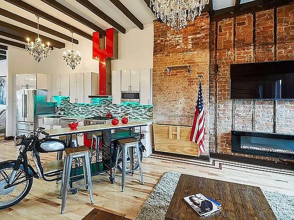 A Stunning penthouse Loft With An Entertainment Room W/ Fireplace, Overlooking The Manhattan Skyline, An Exquisite European Gourmet Kitchen W/ Seating Center Island, Chandeliers, Top Of The Line S/S Appliances And So Much More! - Gut renovated open space designer loft - Hardwood floors - Stainless steel appliances - Exposed brick - Laundry in unit - Sink tub + stand-up shower - Roof-deck access - Huge kitchen - Electric fire place - Comes furnished including: king size bed, sectional sofa, Flat screen TV. Contact us today to schedule a tour.