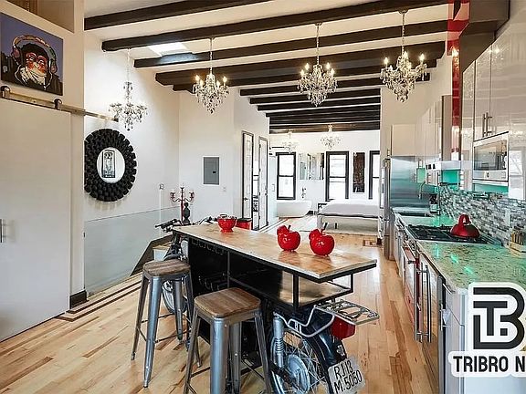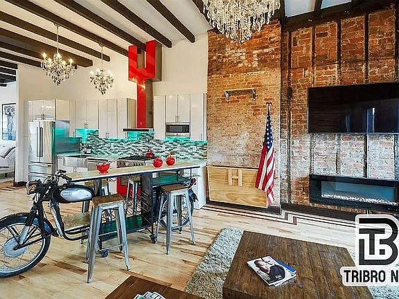 A **Stunning penthouse Loft** With An Entertainment Room W/ Fireplace, Overlooking The Manhattan Skyline, An Exquisite European Gourmet Kitchen W/ Seating Center Island, Chandeliers, Top Of The Line S/S Appliances And So Much More! Gut renovated open space designer loft Hardwood floors Stainless steel appliances Exposed brick Laundry in unit Sink tub + stand-up shower Roof-deck access Huge kitchen Electric fire place Comes furnished including: king size bed, sectional sofa, Flat screen TV. Contact us today to schedule a tour.