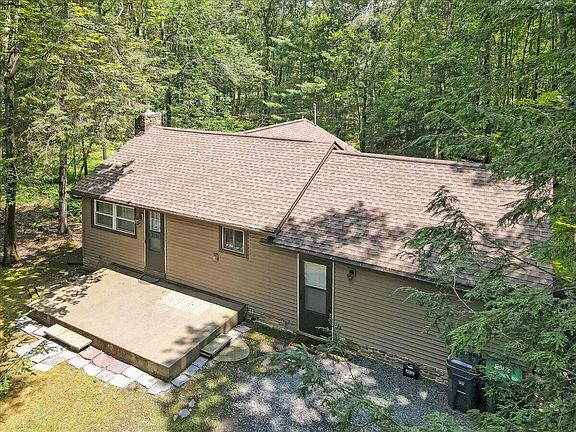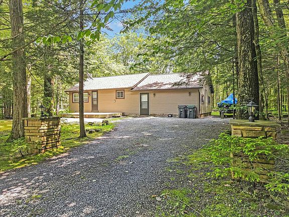 WELCOME to your Peaceful One-Story Pocono Cabin Home, EXTRA separate lot included, totaling 1.39 wooded acres. NO HOA, $100 per lot yearly road maintenance. Very Well Maintained as a primary home for 30 plus years and would also make a great 2nd home or STR. 3 bedrooms, 1 bath w/open layout. Original knotty pine walls in living area w/natural stone fireplace. Roof, siding, windows, all replaced within the last few years. Newer Propane insert in the Stone fireplace, heats most of the home for cozy warm Fall & Winters. New LVP flooring in main living areas. Outdoor firepit. Storage Shed. Short Walk just around the corner to a quaint & quiet scenic lake that's great for fishing & birdwatching, ice fishing or skating. Without the HOA restrictions, Atv's & snowmobiles are ok to use. Walk to Township Park with brand new playground equipment & a softball field. Located in a small subdivision Locust Paradise, A true Hidden Gem in the area. Super convenient to main highways & only 15 minutes or less to shopping, golfing, skiing, state parks & waterparks. IF YOU LOVE NATURE AND NO HOA, you will love it here. Extra Lot 35 Cross St, Parcel ID 19.16A.1.150