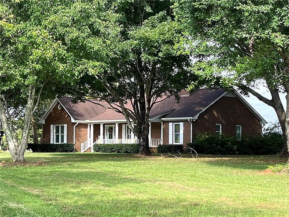 Enjoy the most beautiful sunsets in Newton County! Bring the horses! 3 bedroom, 2.5 bath all brick fully remodeled/updated ranch on 7.29 acres in sought after East Newton County close to the newly completed Eastside High School. This property is located halfway between the Historic Covington Square and Historic Social Circle and bordered by several horse farms. As you enter the home you are greeted by a large hardwood foyer that opens to the great room, dining area and kitchen. New Hardwood floors AND subflooring throughout including all bedrooms. New lighting including Recessed lighting throughout in addition to new plumbing fixtures. A fully updated kitchen w solid surface counters (Corian), custom Shaker cabinets to ceiling, custom island cabinet with decorative support posts under bar area, split farmhouse sink and breakfast bar opens to the banquet dining room and great room with built in bookcases and fireplace w insert. New appliances (Bosch, Whirlpool, Broan). Walk in pantry with screen door, solid wood shelving with beaded board and corbels. Great Room and Dining Room includes a combination tray ceiling and recessed lighting. The Dining Room boasts a crystal chandelier. Master bedroom w LED canned lighting and his/her sectional walk in closet with Single French Door, custom wood shelving and rods. The completely redesigned master bath has Mosaic Tile flooring and includes a 4 x 6 Culture Marble walk in shower, Culture Marble double vanity, linen closet with French Door, Custom Wood Shelving and separate water closet. A bonus room/office with an added closet is located off the master suite. Formerly a screened porch, an enclosed bright sunroom with Travertine Tile floors overlooks oaks, magnolias, azaleas and neighboring pasture and horses. The two secondary bedrooms in this split bedroom plan home have ample space and hardwood floors. The bedrooms are separated by a hall bath with Mosaic Tile flooring, a cast iron tub/shower with ceramic tile surround, Shaker cabinet and culture marble vanity. The large laundry room/mud room is located just off the kitchen and contains a section of shiplap wall, built in storage closet, generous Corian counter space, subway tile, cabinets, a deep utility sink and half bath. The property includes a two car attached garage with wainscotting and storage room with new 50 gallon water heater. The property has an additional two car detached garage/workshop with new tin roof LED lighting, built in cabinets, shelving and a covered outside porch. As you arrive home or leave, you will drive through an area of mature pecan trees. The public water lines have been replaced from the street to the house. There is a well that services the workshop and can be used for irrigation purposes. The septic drain field was replaced with a Domed system. Only minutes to I-20 this property is 45 minutes to Atlanta, Athens and Lake Oconee. Close to Hard Labor Creek State Park, Charlie Elliott Wildlife Center, Takeda Pharmaceuticals, Facebook and the new Rivian Plant.