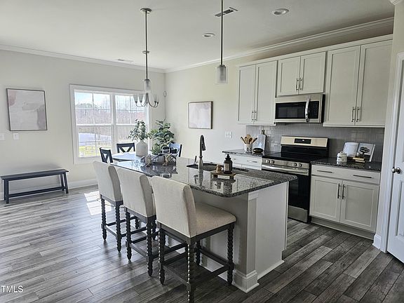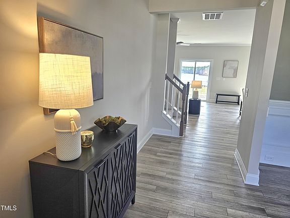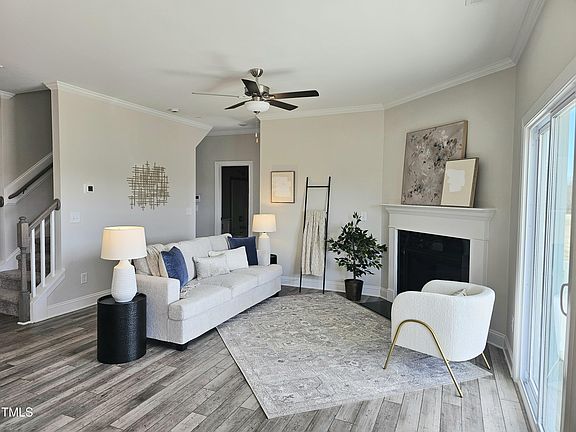 Our Pamlico plan greets you with a large front porch. Main floor opens into an open concept plan. Family rooms has a corner fireplace. The kitchen is equipped with a large pantry and kitchen island. Full bathroom and office/flex space are also on the main floor. Enjoy the formal dining room with a coffered ceiling and wainscoting. The second floor has the main bedroom and three additional bedrooms along with a loft area and laundry. Enjoy the large lot and low taxes.