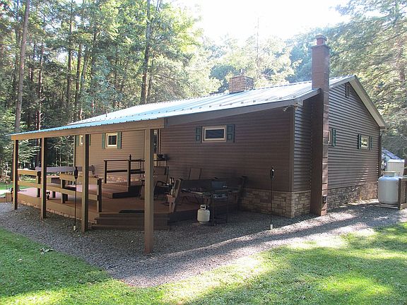 Ranch Style Home on wooded 1.4 acre lot Open Kitchen, Dining & Living Room Area 2 Large Bedrooms / 1 Bath /Outdoor Shower/Full Basement with Sump Pump and Wood Burning Stove On-site Septic System / Shallow Well Electric / Cable / Phone / Internet Gas Log Insert / Electric Heat Pump with 3 AC split units/ Electric Baseboard as Alternative Heat Source/Appliances 2 Outdoor Sheds