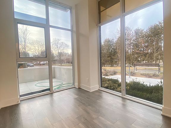 Grand floor unit with huge terrace as private garden; LAMINATE FLOORS THROUGHOUT, 10 FT CEILING; FLOOR TO CEILING WINDOWS AND WALK OUTS TO BALCONIES; MODERN KITCHEN IS EQUIPPED WITH B/I DISHWASHER , B/I RANGE HOOD; FRIDGE/FREEZER STACKED COMBO; STOVE RANGE; AND MICROWAVE. AMENITIES IN THE BUILDING INCLUDES PARTY ROOM, GYM, FITNESS ROOM, TABLE TENNIS, BILLIARDS, ROOF TOP GARDEN WITH BBQS AND MORE. THIS UNIT COMES WITH ONE PARKING SPOT AND 1 LOCKER UNITS