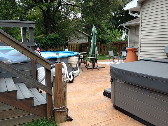 Nice ranch style home with fenced backyard pool and hot tub! Home features a large living room that is open to nice size eat in Kitchen with island. 20x26 Family room addition on the back of house also open to the kitchen! Fun Backyard area with stamped concrete patio, above ground pool, hot tub and fire-pit. Nice Laundry/utility room on main floor. Full Basement for storage. Attached 2 car garage.
