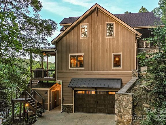 Custom built Lakefront home with spectacular views of Lake Lure and famed Rumbling Bald Mountain! This amazing lakefront home was handcrafted in 2019 and boast some 24 ft vaulted ceilings, 8 ft solid core wood doors, floor to ceiling stone fireplace and hardwood floors throughout its open designer floor plan. Just visualize yourself unwinding in the hot-tub or reclining by the outdoor fireplace while taking in some of the most spectacular views available on the lake. No detail was spared in the custom kitchen either....with its solid wood cabinetry and stainless steel appliances. You will also enjoy the large 2 car garage and elevator service to every floor. If you're looking for the best Lake Lure has to offer, this beautiful lakefront home is built to suit even the most discriminating taste. A must see at $2,790,000.