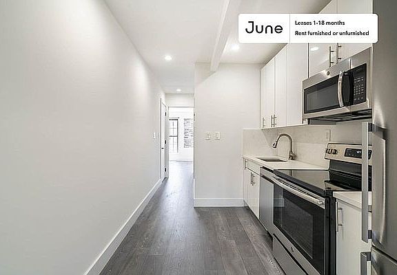 Furnished or Unfurnished bedroom, 1 bathroom apartment on the Greenpoint. This bedrooms, bath apartment on the Greenpoint is available on a flexible 1-18 month lease. Monthly rent rate is determined by furnishing preference, move-in date and move-out date. Utilities are not included. Speak to a June representative for recommendations on the best stay duration for the lowest rate. This home includes also, this unit is conveniently located, several local parks, restaurants and bars are just minutes away. About June: Welcome to the easiest rental experience of your life. Rent furnished or unfurnished apartments for 1 - 18 months, bypass hidden costs and broker fees and enjoy an easy move-in. As a resident, youll have access to 24/7 support and monthly cleanings of the homes shared spaces. Sign up now to apply online for your next home with June. For the convenience of our residents, June has partnered with Nutilti, who handles the set up of all utilities, and bills each resident directly for their portion of the bill, giving you more control over your spending. Visit our website for more specific dates, and quotes.
