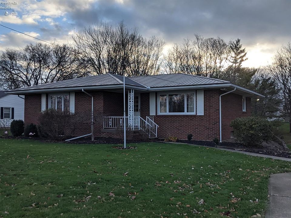 UPDATED 3 BEDROOM, 2 BATH BRICK RANCH WITH PARTIALLY FINISHED WALK-OUT BASEMENT! Well-maintained. Living room with picture window and crown molding. Family Room features fireplace. Eat-in kitchen with island, pantry and newer appliances. Bedrooms feature hardwood flooring. Master suite with tiled shower. Some updates include metal roof 2015, furnace/central air 2014, water heater 2018 and main level carpeting. Two car attached garage. Part of back yard is in the flood plain, seller does not pay flood insurance.<br>