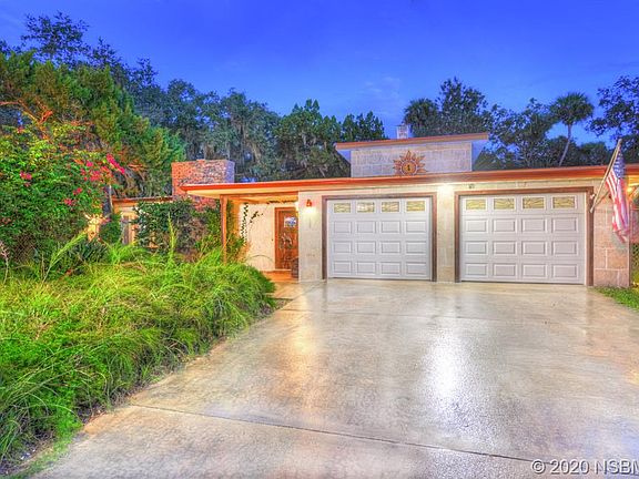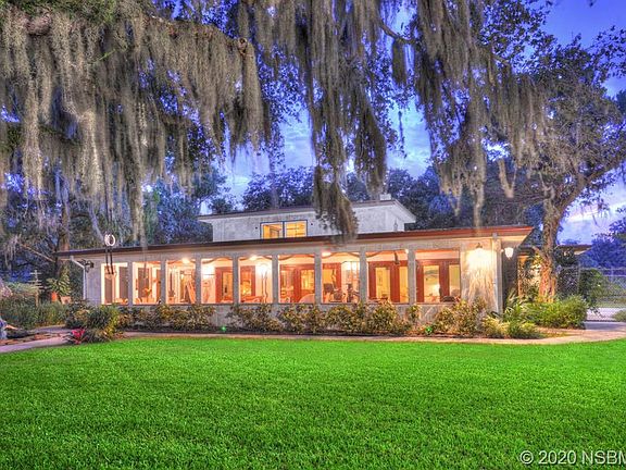 THIS IS THE LIFE! PARADISE FOUND. Prepare to be impressed when you enter this superbly maintained parcel of land privately situated directly on the Intracoastal Waterway. This Florida waterfront property offers endless opportunities for entertaining, leisure and enjoyable living. This three-bedroom, two bath home has an atmosphere and water accessibility that is hard to replicate. Featuring an outdoor circuit gym, large manicured lawn with historic oaks, tiki bar, fire pit, launching beach for kayaks or paddle boards overlooking beautiful water-ways . The enclosed dock house provides a bonus bedroom for those cool breezy nights when outdoor sleeping is the preferred choice. Bring all your toys! Plenty of room for an RV, build a pool, 3 lifts with lift capacity ranging from 30,000 to 6,000. A boater's paradise and fishing opportunities that are unmatched. Constructed over 2 levels, this home enjoys the abundant natural light and a layout designed for easy living and entertaining. The ground floor incorporates an eat in kitchen, welcoming living and dining area that open up to the enclosed wrap around porch. This expands the entertaining opportunities and open-air feel. The living room's fireplace provides comfort and warmth in the wintertime with the tranquil back drop of historic oaks and the very best of unobstructed waterfront view. There are two guest bedrooms located downstairs. Upstairs, you will find the master bedroom suite with walk-in closet, in-suite bathroom and direct waterfront sunrise views. Exterior of this home is finished with Coral keystone and is only found in ocean communities. These stones offer rich texture and unique visual appeal composed of a variety of fossilized plants, shell and coral. The inlet is 45 minutes away where you can enjoy disappearing island in historic Ponce Inlet and a stone throw away from New Smyrna Beach.
