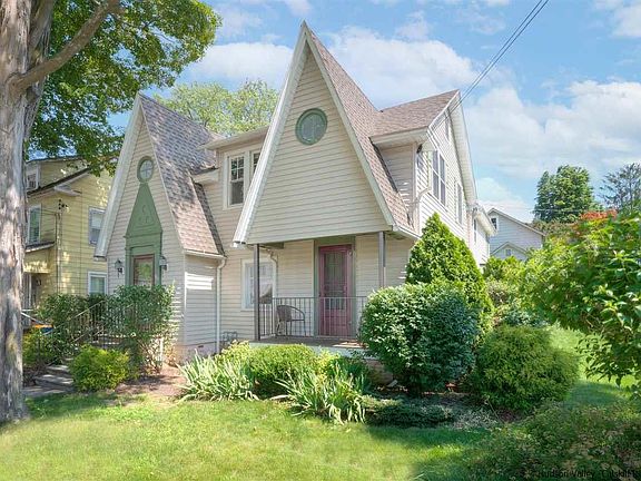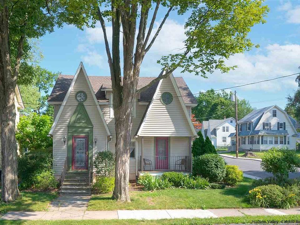 Located just 5 city blocks from historic Uptown Kingston (stockade area) lies this 4 bdrm 3 bath Tudor home. Sited on a well manicured corner lot, this property has many updated features while still having the charming attributes of yesteryear. Gourmet kitchen with black granite countertops, maple custom kitchen cabinetry, under-counter lighting with just the swipe of your hand as well as new stainless steel appliances. Control your recently upgraded 2-zoned heat & central a/c from afar with the newly installed Ecobee wifi thermostats. New roof put on in 2018. Spacious bedroom and full bath on first floor. Two bedrooms and a very large master ensuite that has a walk-in closet with sun-tube lighting as well as a personal balcony on the second floor. There is also an office room right off of the master for working from home. Two car detached garage just off of your newly paved patio area. Details such as a stained glass front door and a pass through window from the kitchen to dining room are just a couple of things that make this home so very charming!