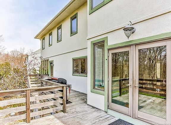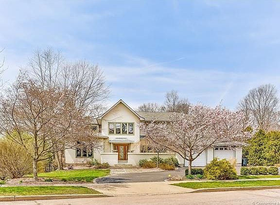 Frank Lloyd Wright inspired design. Fabulous open floor plan, huge kitchen gathering area, professional gas stove, 2 fireplaces, courtyard, private rear yard that backs up to 140 acres of Pequot woods. This home is way, way below the cost to reproduce.