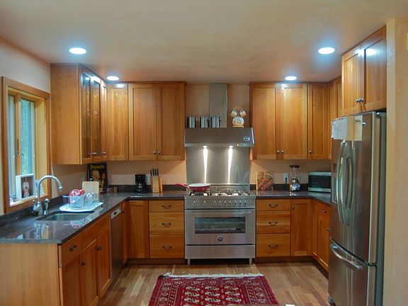 Custom Contemporary with quality finishes including cherry floors, beautiful plaster walls & cedar siding. Chef's kitchen with cherry cabinets & granite counters. Dining area with sliders to lovely deck - perfect for barbecuing & enjoying your back yard. Master suite with sitting room, outdoor balcony, & large bathroom with soaking tub & shower. Attached two-car garage. Brokered and advertised by Lance Vermeulen Real Estate, Inc.