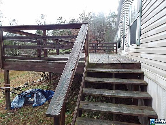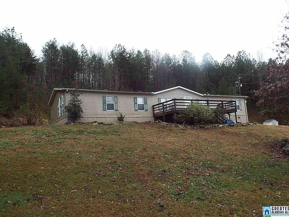 PRIVACY! PRIVACY! PRIVACY! Look at this huge 28 x 80 mobile home on a permanent foundation that sits on 8.5 acres. All the rooms are large; huge family room with a fireplace, open kitchen with large eat in area with sliding glass doors that lead out to a large open deck. Large master bedroom with sitting area that could be used for a nice office area with large windows for natural light. All appliances remain including washer and dryer. Large front deck, new heat pump, concrete driveway. All this and more only minutes from Hwy 75 and Birmingham. Owner has reported sightings of several deer on property.