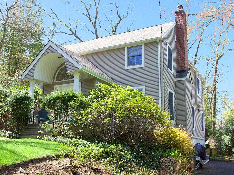 Spacious East Hill colonial: 3 bedrooms (possibly 4), 3 full baths including large master suite. Truly beautiful, this striking center hall features a welcoming entrance hall (bench seating), a large family room with built-ins, elegant living room with wood burning fireplace, and formal dining room with French doors to separate deck. The over-sized updated kitchen, with separate eating area, opens up to the rear deck which in turn leads to the beautiful backyard including a naturally-landscaped pond with a tranquil waterfall (man-made). The 2nd floor has 3 bedrooms plus an office with built-ins (possible 4th bedroom), 3-skylights and a large hall bath. The large master suite has cathedral ceilings, spacious master bath with separate shower and Jacuzzi, 2 separate walk-in closets, and second office. The basement is finished with ground level access and has a rec room, storage area, laundry, and deep 2 car garage. East Hill Location, Tenafly Schools, 2 Zone HVAC, wired for sound, close to worship--make it yours.