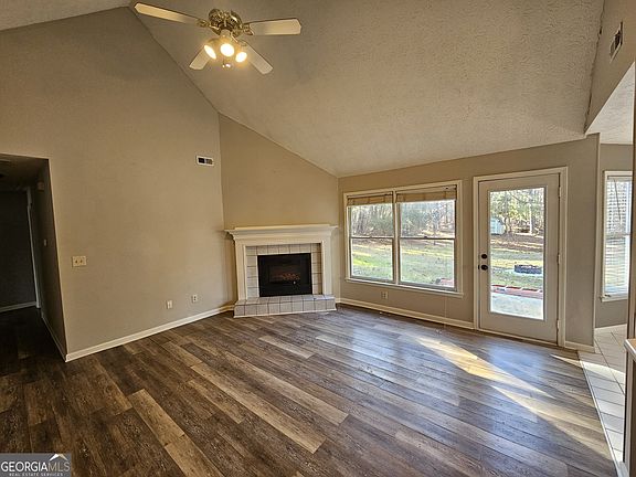 Avail now! 3 bedrooms, 2 bath - cute house in wonderful lake community. Vaulted family room with cozy electric fireplace is open to the dining area & kitchen with stainless gas range & DW. Out from the family room is a patio & large private backyard - partially fenced. The master suite includes the bedroom with tray ceiling & ceiling fan, a good sized walk-in closet & bath with a garden tub. Easy care flooring throughout with LVP hardwood look flooring & tile floors in the baths & kitchen/ dining areas. Plus a 2 car garage with auto opener. Nice neighborhood offering a lake & walking trail around & great schools too! (Northgate High) Copyright Georgia MLS. All rights reserved. Information is deemed reliable but not guaranteed.