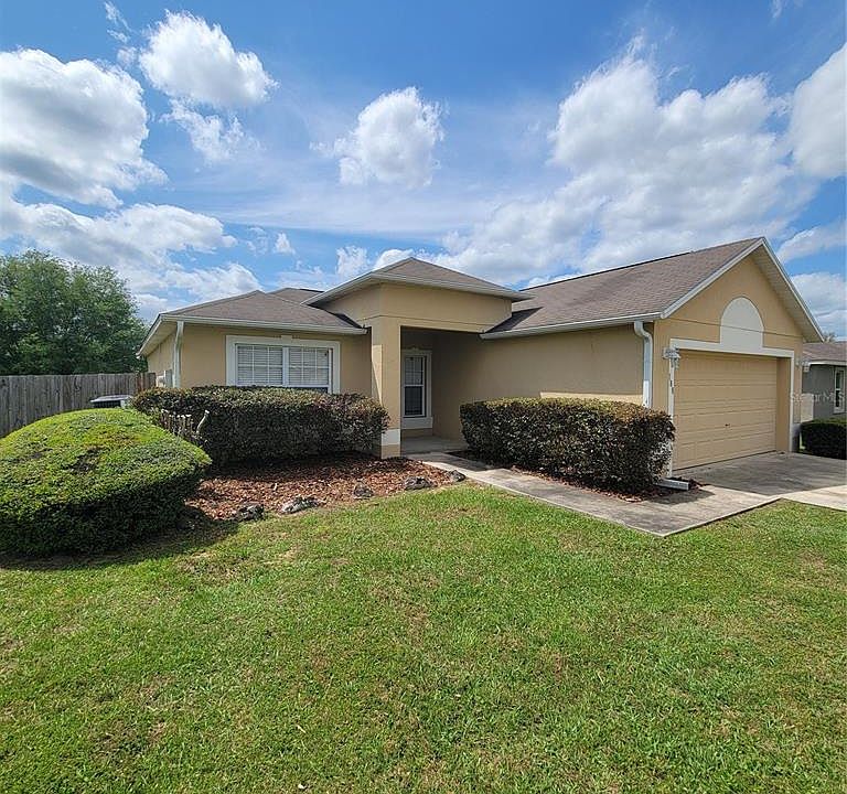 This well maintained 3 bedroom, 2 bath home in Silver Springs Shores is ready for new owners! This home has been used as a long term rental for the last 5 years. This split floor plan home features vaulted ceilings in the large living and dining area right in the center of the home, arched entryways throughout, ceramic tile in the kitchen and bathrooms, and luxury vinyl plank in the living spaces and bedrooms. The spacious primary bedroom overlooks the fenced backyard, boasts an ensuite bathroom with garden tub and remodeled walk-in shower, and a walk-in closet. Watch the sunrise from the windows of the eating area in the kitchen. Range/oven, hood microwave, and refrigerator were updated in 2022. Dishwasher, washer, and dryer are included. The laundry room is right off of the kitchen on your way to the 2 car garage. The garage offers an automatic garage door with keypad entry from the outside. The home comes with equipment for a security system. The lot has well maintained landscaping and the backyard is fully fenced. Home comes with NUVU water filtration system.