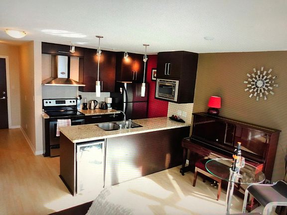 This beautiful condo impresses with floor-to-ceiling windows and fabulous floor plan. Tonnes of natural light flows throughout this lovely space. The sun-drenched balcony is the perfect sunbathing or coffee-sipping spot, with stunning city views and peek-a-boo view of False Creek...reminding you that the seawall is only 2 blocks away! Hardwood floors and upscale furnishings include a Natuzzi genuine leather sofa & club chair, creating a warm & stylish lounge feel. A sleek tall table & high stools, and a charming piano add to the sophisticated aura (Note: owner is flexible & happy to relocate piano if tenant would rather just have extra space.) In the stylish kitchen, stainless steel appliances & granite countertops are accentuated by a chic wine-coloured accent wall, and the space is well-equipped with all kitchen essentials. The spacious bathroom features a large bath/shower combo and in-suite laundry. You have the added luxury of a den/office space in this suite, complete with generous storage furniture. These sought-after Espana towers are perfect for anyone who genuinely appreciates living well. Enjoy the value-added lifestyle of having these outstanding building amenities: over-sized (Olympic) indoor pool, jacuzzi, sauna, spacious private courtyard of outdoor gardens, 24-hour concierge security, secured underground parking, and extensive fitness/gym facilities. The 'Crosstown' corridor is known for its ideal location at the junction of glittering 'Yaletown', ethnic 'Chinatown', historic 'Gastown', and the wonderful False Creek Waterfront. You have the best of everything here, all within 2 blocks in either direction! Looking forward to meeting our new tenants! :) INCLUDED in your rent are: free access to building's huge pool, gym, private gardens, sauna, and hot-tub; also basic cable, electricity/hydro ($50 cap), Netflix, internet, and hot water. Small pets may be considered. Secure private parking stall in the building's underground garage offered for $100/mo.