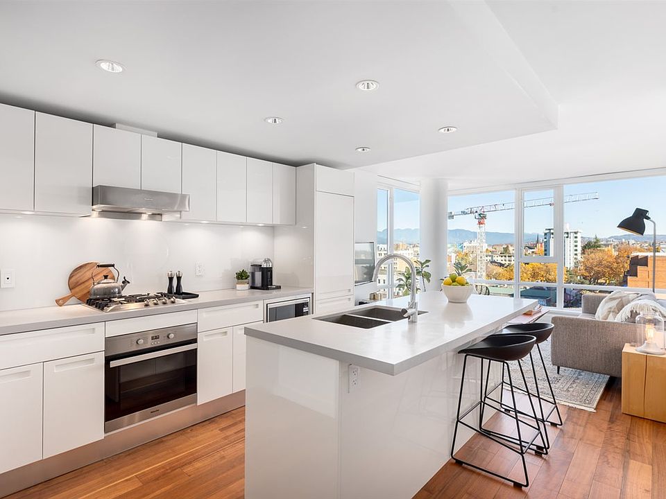Breathtaking Downtown & North Shore Mountain VIEWS from this BRIGHT & MODERN 2 bed 2 bath CORNER SUITE in stylish 188 Keefer by Westbank. This bright CORNER SUITE features high end kitchen w/Miele & Blomberg appliances, chef's island for entertaining & separate dining area. Spacious master suite comfortably fits King bed, and has W/I closet, luxurious spa-like bath. Ideally laid out for maximum privacy w/ 2nd bedroom on opposite side of living area. Situated in vibrant Chinatown, you're surrounded by the charm of historic buildings, grocery stores, restaurants, parks & only 5 min walk to Gastown, 10 min walk to Olympic Village, and steps to bike routes and SkyTrain. Steps to Vancouver's most talked about restaurants like Bao Bei, Kissa Tanto, Phnom Penh, Mila, Jukes, Virtuous Pie!