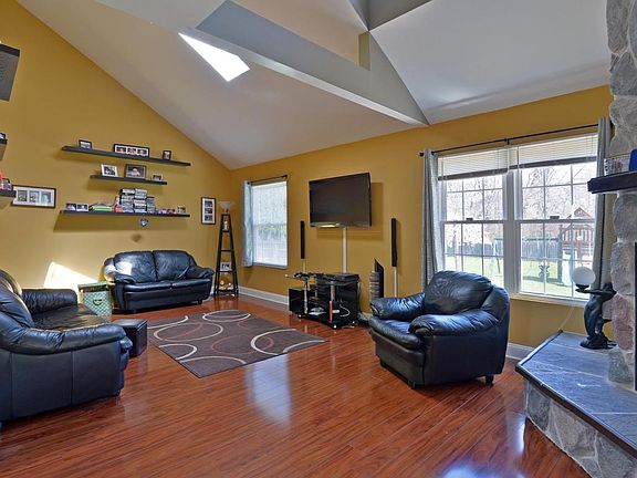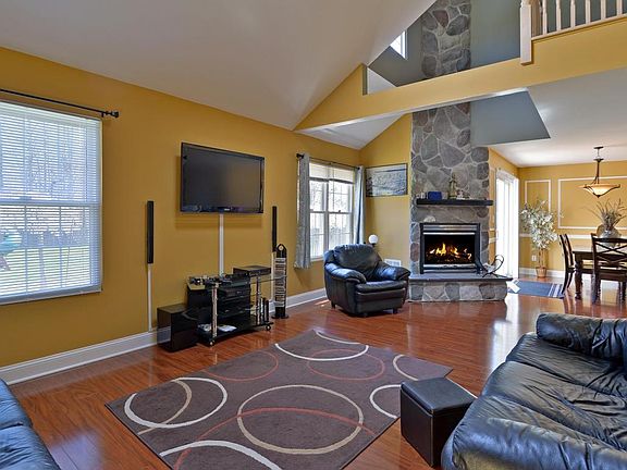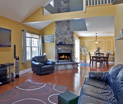 Welcome to Colts Pride. Lovely Hillcrest model three bedroom, 2.5 bathroom. Very bright and spacious living room with two story stone fireplace. Private back yard with one of the largest lots in Colts Pride.