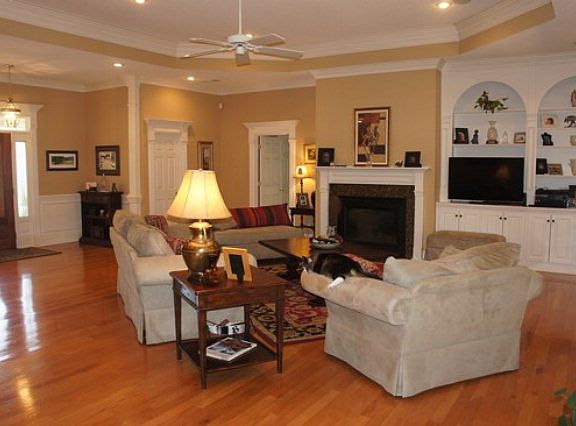 EXQUISITE LEE COUNTY HOME IN POPULAR CALLAWAY LAKES ON 1.14 ACRES! Appealing 4 bedroom 3.5 bath PLUS BONUS ROOM home w 3676 sqft w loads of upgrades & super floor plan! Elegant Foyer Opens To The Grand Great Room w hardwood floors, trey ceilings, fireplace, built-ins w arches & windows & doors across the back of the room! Stunning kitchen complete w loads of counter and cabinet space, center island, GRANITE counter tops, back splash, pantry, hardwood floors, large breakfast bar & breakfast nook w windows surround! Formal dining room w hardwood floors & trey ceilings! Deep crown molding & plantation shutters throughout! Huge Master Suite features trey ceilings, built ins, jetted tub, double vanities, sky light, his/hers closet, tiled shower! The 3 additional bedrooms are spacious w lots of closet space! Bonus room perfect for teenage quarters or office! Outside boasts 3 CAR GARAGE, sprinklers, covered porch, deck, roof 4yrs old, circular driveway, plush landscaping, private yard!