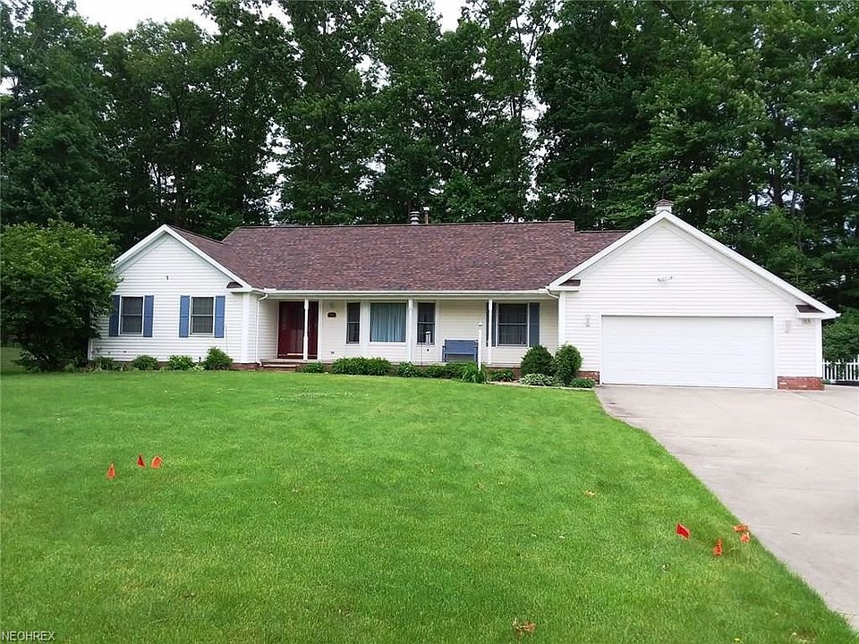 Lovely custom built 4 bedroom ranch with finished lower level & workshop on beautifully landscaped lot! Foyer entry leads to elegant living room with bay window & see-thru gas fireplace. Great kitchen with Durastone flooring/oak cabinetry, pantry, garden window over sink & bayed eating area. Steps away is formal dining room with porcelain chandelier. Carpeted family room has the see-thru fireplace/mantle/hearth & french door to patio & peaceful backyard. Owners suite includes private bath & walk-in closet. 3 additional bedrooms & another full bath complete this wing of home. 1st floor laundry with back door access & half bath right off kitchen & garage. Huge lower level has a spacious rec room, perfect for entertaining/gatherings, game room & separate workshop. Oversized 2 car garage & extra concrete pad for additional parking. Additional plus new roof May 2018 & new furnace/air conditioning 2017. This is a must see! Construction on Ledge but police will allow scheduled showing.