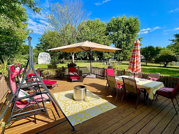 This Center Grove brick ranch located on a cul de sac, has a full basement and a huge back yard to fall in love with! New 20x25 deck (2022) for outdoor entertaining & separate fire pit area to enjoy Hot Dogs & S'mores this Fall. Handy mini barn for extra storage.Yard extends approx 75' beyond the fence. Full basement has wood burning fireplace w/blower, big laundry/utility room includes washer & dryer & utility sink. Bar area includes bsmt refrigerator.Updates include Roof 2016, Garage Door, HVAC 2020, Water Heater 2019 & Kitchen Cabts 2012, Refrigerator 2023, Stove 2022, Master Bath Shower 2023. New carpet to be installed in Family Rm & MBR.Ready for any cosmetic updates you may wish to do. Lots of potential for whatever your needs may be!