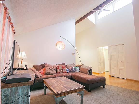 Covered walkway opens to intimate living room with white brick fireplace, vaulted ceilings & clerestory windows. Light filled, spacious family room with French door to large deck. Master bedroom suite with sitting area framed by bay windows, and slider to deck.Large master bath, walk-in closet. Extra room for office or flex space. Quiet cut-de-sac in convenient Santa Clara neighborhood.