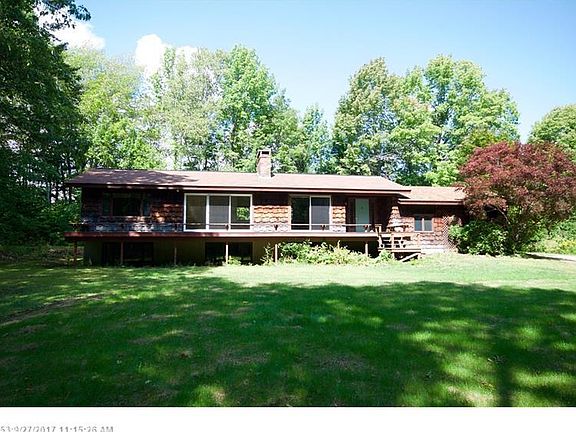 Enter this Secluded 6 acre property through a private drive into an open setting. Solid built 4 BDRM/ 2.5 BATH open beam home was designed to accommodate 1st floor living. This home features a large living room with massive brick fireplace & dining room with wood stove open to the kitchen. 1st floor MSTR BDRM w/ large sitting room, 3 closets and private Bath. You may also enter through the oversized 2 car garage into the laundry hall area. Lower floor offers 2 BDRM, 1 Bath, den & multiple storage rooms.