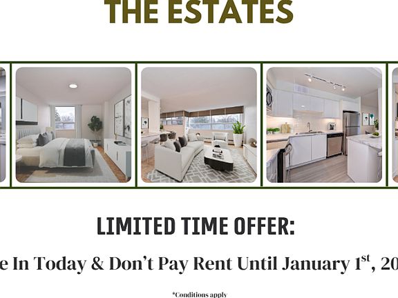 AboutWelcome to the Estates. This 12-storey building in Kitchener boasts clean and modern, spacious bachelor, 1, 2, and 3 bedroom apartments. All apartments are freshly painted and cleaned and feature recently upgraded kitchens, ceramic tiles, and 4 appliances (fridge, stove, dishwasher, and built-in air conditioner). Residents here enjoy access to a fitness centre, social room, storage lockers and underground parking. The building has a large onsite laundry room, two elevators with secured entry.Note that parking rates vary depending on the number of vehicles and parking location. Access to fitness and storage lockers is not included in monthly rent (fee for service applies).