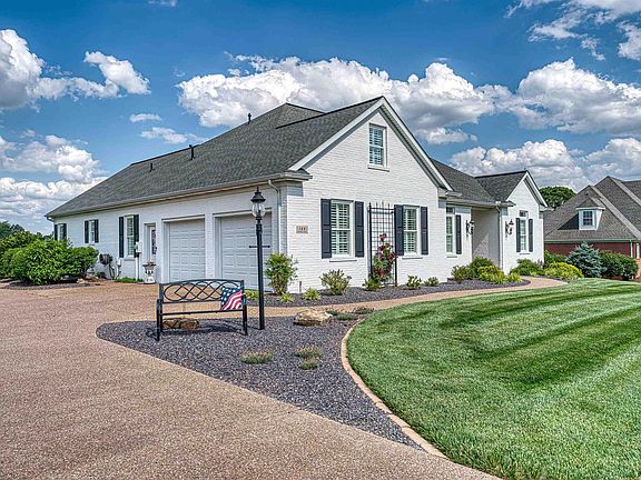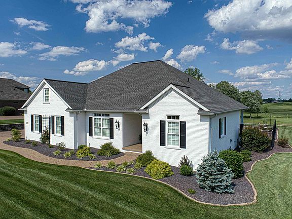 WOW! This property is spectacular inside and out. The landscaping and curb appeal greet you as you arrive with a white exterior and chic black shutters. The open floor plan creates a seamless flow from the foyer to the bright living room. With a tray ceiling and stunning views of the backyard and golf course, this space offers a welcoming and spacious feel. The dining area, overlooking the living room, features an extra tray ceiling and a distinctive light fixture. The eat-in kitchen's deep breakfast bar provides ample space for quick meals or socializing. The stainless KitchenAid appliances offer a sleek and modern look, while the walk-in pantry allows for convenient storage. The endless counter space is perfect for meal prep and cooking. The owner suite's patio access, ensuite bath, and walk-in closet create a luxurious retreat within the home. The twin sink vanity, walk-in shower, and jetted tub in the owner bath offer a spa-like experience for relaxation and rejuvenation. This private oasis provides a perfect blend of comfort and elegance for the homeowner to enjoy. The additional bedrooms on the opposite side of the house share a generous hall bathroom. One of these rooms could serve as a versatile office space or a hobby room, offering flexibility in the use of the space. The tiered patio area and inground cocktail pool offer a slice of paradise in your own backyard. The stunning views of the golf course create a serene backdrop for relaxation and entertaining. The attached 2.5 car garage provides ample space for storage and even a golf cart, while the floored attic adds extra storage convenience. This outdoor haven combines luxury and practicality for the ultimate living experience. You do not want to miss this home!