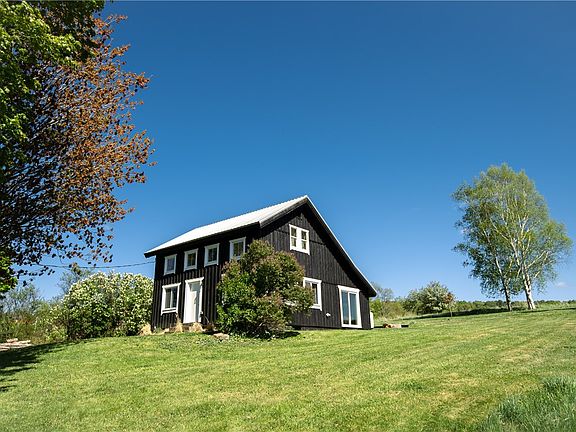 This turnkey Scandinavian-style farmhouse has a modern interior and a quiet pastoral setting. Set on 6.5 acres, this 100+ year old farmhouse has been fully updated with modern electrical, plumbing, insulation, and fine finishes. There is a full bathroom on each floor, and a large primary bedroom on the first floor with large windows viewing the private back yard. The brand new kitchen features a Viking gas oven, and stainless steel dishwasher and refrigerator. The bright, spacious living room connects with the kitchen, allowing for open concept living and dining. Any seasoned resident will appreciate the tiled mudroom entrance with adjoining laundry room. You'll have plenty of space to hang your coat and kick off your boots, keeping the mud where it belongs. The downstairs bathroom adjoins the primary bedroom and features a large walk-in shower. Outside the house, you have a large barn that can be used as storage, a garage, or a space for hobbies. Located on a quiet town-maintained road, this home is an 8min drive to the hip town of Stamford, 31min to the shopping district of Oneonta, 1 hour to the Albany International Airport, 37min to Windham, and 2 hours 45 min to the GW Bridge.