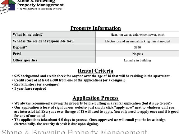 - Sewage included in rent