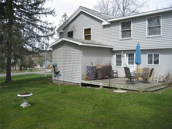 6 bedroom, 3 bath home located in the Village of Moravia. 1.8 acre lot. new vinyl siding and windows. Energy Star Munchkin Boiler. Great room is large enough for a pool table and other toys. Large kitchen with island has patio doors to back deck. Many rooms have built in storage. Living room and master bedroom have gas fireplaces. Second floor laundry. Lots of space available for a first floor bedroom. Attached workshop area- 22x12. Second floor storage-23x30 has exterior access on the back of the house. Home has so much to offer, lots of room, large lot, village conveniences. Short distance to all of Moravia!