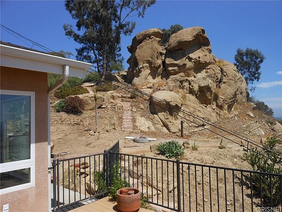 Dramatically surrounded by natural rock formations with amazing city and mountain views. Light and bright open floor plan with views from every room. Private gated neighborhood in quiet box canyon yet minutes from freeways, shopping and warner center. 3 parcels giving you 31,000+ sqft to expand house or create your own tranquil outdoor space. Large master bedroom with walk in closet and jetted tub in bathroom. Bedrooms located on opposite sides of house for privacy. Built in 2006 this home is your perfect hideaway from the hustle and bustle of the SF valley.