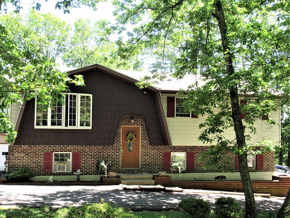 Immaculate bi-level located on 1.33 private acres. Not in a development, this home is very inviting. You will enjoy the pleasing decor and neutral color palette. The upgraded modern kitchen offers granite countertops, custom cabinets and stainless steel appliances. Other features include hardwood laminate flooring, generous room sizes, pellet stove & completely finished lower level. The screened porch is perfect for relaxing and feeling immersed in nature. Enjoy morning coffee while watching the magnificent sunrise. The oversized corner lot offers plenty of privacy and includes paver patio, walkways, gathering area and 2 sheds. Enjoy evening strolls in the neighborhood. Excellent and convenient location just minutes to I-80. Close to all major Pocono attractions. LOW TAXES!