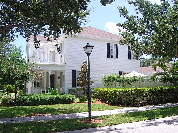 Beautiful two story, 3 bedroom + den, 2.5 bath home in the popular New Haven Community of Abacoa. Walking distance to Beacon Cove Elementary School, shops, restaurants and 4 miles to Juno Beach. 2,124 ft. under air, 2,966 ft. total. Exterior: Corner lot across green space Two car paver parking area in rear Custom pool with paver decking, heat pump and salt system PVC privacy fence Sunbrella frabric awning Accordian hurricane storm shutters on all doors and windows Hurricane impact french door to lanai Custom etched glass front and balcony door Interior: Oak hardwood floors throughout the entire house Custom built in wall unit and bench Kitchen expansion remodel with carrera marble counter tops, subway tile backsplash and beadboard accent wall Stainless steel appliances California shutter on sliding glass door to pool Crown molding throughout the entire house Decorative molding window framing Wood accent walls in den, master bedroom and bedroom