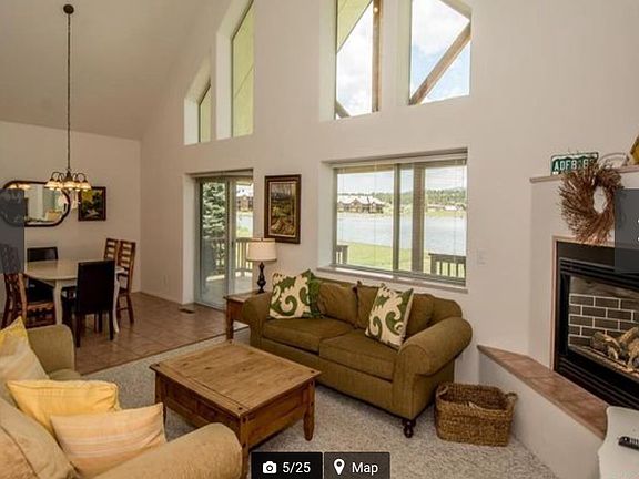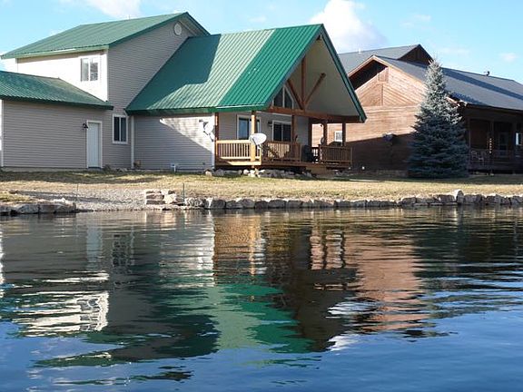 This almost 1,800sf home is located directly on the shoreline of Village Lake, with spectacular mountain and lake views. It is a 2-Story, three bedroom / 3.5 bathrooms. It has beds for 8. The master suite is located on the first floor, and bedrooms two and three are upstairs. All bedrooms have their own private bathroom with great views. The living area has a gas fireplace, large screen TV, and features lots of glass that faces the lake and lovely mountain views. A large covered deck on the rear of the home faces the lake and mountains. The rear shoreline has a rock seawall and a launch for your water toys. The house comes fully furnished and is ready to be used or for a VRBO rental. It has generated excellent income results. This home is less than 10 minutes away from the National Forest, giving you access to the many hiking trails, waterfalls, abundant wildlife, or just the opportunity to embrace the amazing scenery of our Rocky Mountains.