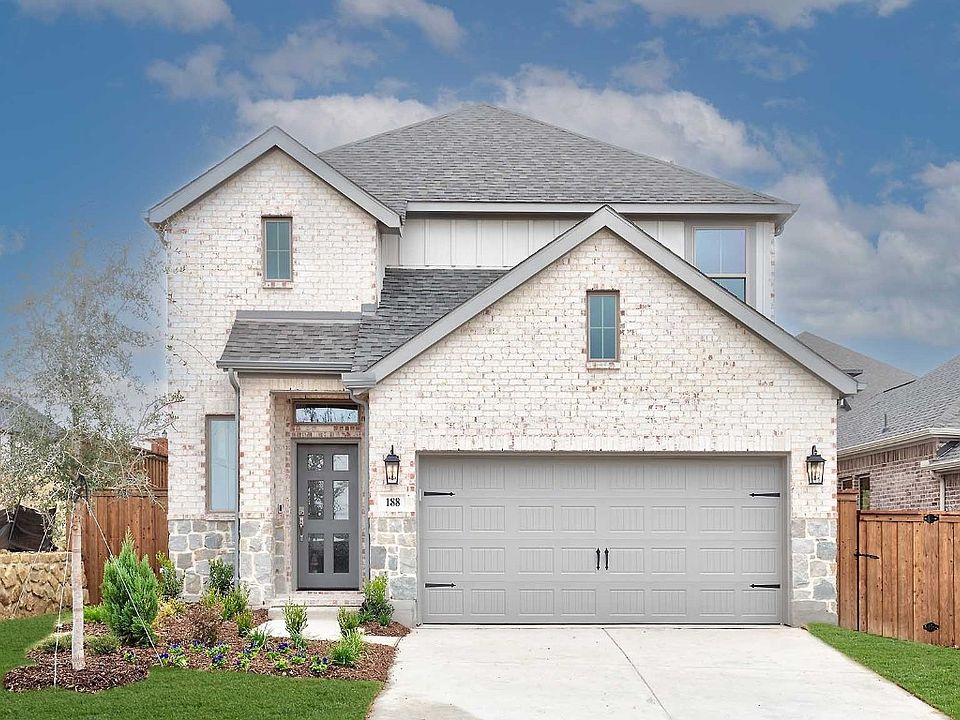 Two-story entry leads to open family room, dining area and kitchen. Family room features wood mantel fireplace and wall of windows. Kitchen features large corner walk-in pantry and generous island with built-in seating space. A half bath and walk-in closet complete downstairs. Second-floor primary suite. Double doors lead to primary bath with dual vanities, separate glass-enclosed shower and two walk-in closets. Two secondary bedrooms and a full bath complete upstairs. Abundant closet space and natural light throughout. Covered backyard patio. Two-car garage.