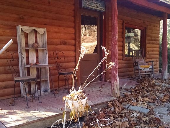 - Exterior Material: Vinyl, Log, Brick (Partial)
