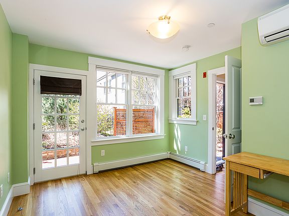 Conveniently located between Central and Inman Squares, this 3 level, 2BR, 2 BA Aposhian townhouse was built in 2010. The home is set back from Prospect St in a quiet courtyard. First floor bedroom/study with bathroom en suite. Second floor open concept kitchen and living room with built in island, maple cabinets, and modern appliances (inc. stacked washer/dryer). Third floor spacious master suite with lofted ceilings, en suite bath and walk-in closet. Oak floors and high ceilings throughout. Unfinished basement (20x10), wall-mounted A/C, dedicated parking spot, professionally managed HOA. Walking distance to Harvard and Kendall squares.