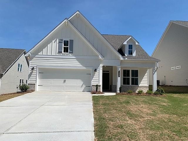 NEW by Award Winning TRATON HOMES - The Nicholson B Plan - 3 Bedrooms and 3 Baths all on the main level. The home will be ready in May. This 55+ Active Adult Community, features a clubhouse, pickleball courts and a dog park. This beautiful lot is located just adjacent to the cul-de-sac with open views of the community off the rear covered patio. This home makes an inviting first impression when you walk up to the front door with its warm and welcoming covered front porch. You are welcomed into the foyer, flanked by a secondary bedroom and full bath which leads to the bright open kitchen, dining and family room. With 9 ft ceilings, LED lighting as well as pendant lights over the island, a gorgeous kitchen with a large island and a spacious walk-in pantry, and under cabinet lighting awaits you. The huge owner's suite wing includes a luxurious bath, stepless entry into the shower with a built-in seat, large walk-in closet, and double vanities. The home also includes an open designated dining area that is open to the kitchen and family room. The family room features a gas fireplace and looks out on to the rear covered patio. The hallway leading to the third bedroom and ensuite bath features 2 storage closets and the laundry room. Walking distance to the Publix shopping center, a short drive to Woodmont Golf Club, Downtown Woodstock, Canton and Northside Cherokee Hospital. A $10,000 bonus is offered for Design Options, Closing Costs or HOA Dues when using Traton's preferred lender. PLEASE NOTE ALL PHOTOS ARE STOCK PHOTOS AND ARE NOT OF ACTUAL HOME AS HOME IS UNDER CONSTRUCTION!