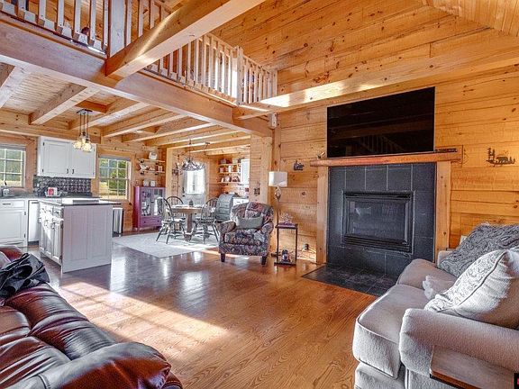 GORGEOUS LOG HOME W/RIVER BLUFF VIEW/PERFECT VRBO. Selling completely furnished ready to move in or rent out as a VRBO (sleeps 8). Immaculate custom built in 2006 w/1,660 sq. ft, 3 bedrooms, 2 bath, loft area, vaulted ceilings, granite counters, stainless steel appliances, gas fireplace, open floor plan, & hard wood floors. Situated on 0.60 acre m/l with 24x30 detached 2-car garage w/workshop, loft & metal roof. Primary suite on upper-level w/huge walk-in closet & sliding barn doors. Cozy loft/office area includes brand new 42” flat screen TV & custom sofa sleeper (sleeps 2). Lovely 16 x 20 deck & inviting firepit area. New 30-year architectural shingled roof in 2021. Brand new 65” full motion wall mount TV over the fireplace. Brand new GE washer/dryer & Ring security system. Outdoor furniture on front porch & back deck, both gas & charcoal grills, dishes, towels, linens, pots, pans & more all convey. Launch your boat on the river less than 1 mile away. See link for 3D Virtual Tour.