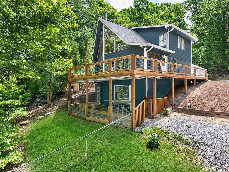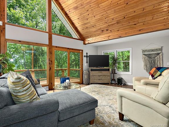 Stunner! CURRENTLY BEING USED AS SHORT TERM RENTAL, Tastefully renovated with a modern touch. Rare find A-frame is tucked away in sought after South-East Asheville location seconds to the parkway and ten minutes to downtown Asheville. Just outside city limits, this property can be used as a primary residence or short term rental. Open main floor space with an abundance of natural light, beautiful knotty pine vaulted ceilings, large custom kitchen and open floor plan for entertaining. Perched master bedroom, Radiant heat master bath, large walk-in closet. Multiple rooms in the finished lower level with private entrance.