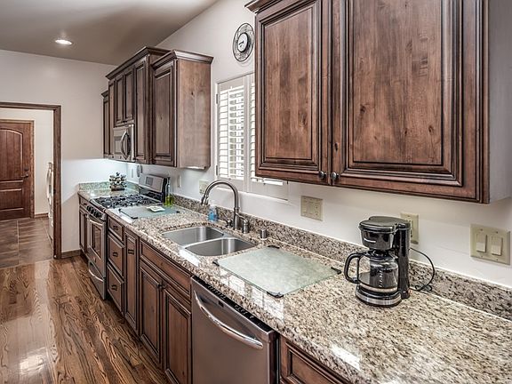 Quality throughout this beautiful Santa Fe style home on 1/2 acre level corner lot. 3 Bedrooms, 3 full baths and oversized 2 car garage + shop. Real wood floors, granite counter tops, soft close cabinets, under cabinet lighting, walk-in pantry and custom plantation shutters are just a few of the upgrades to this newer home. Entertain on your covered deck with a grilling area. This well cared for single story home with few stairs is a must see.