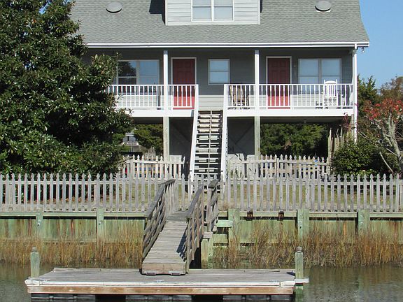 Lovely well maintained canal front home with views of the Intracoastal Waterway and the Holden Beach ICW Park. First floor features a dining, kitchen and den on one side, living room, bedroom and bath on other side with hall in between & laundry area. Second floor features 3 bedrooms and a hall bathroom. Views of the canal from the back porch and bedroom windows and ICW from front porch and living room and dining area. Double carport under house. 2 storage buildings. Fenced back yard. Floating dock for your boat. Call Gay Atkins, Proactive Real Estate, 910.540.5470