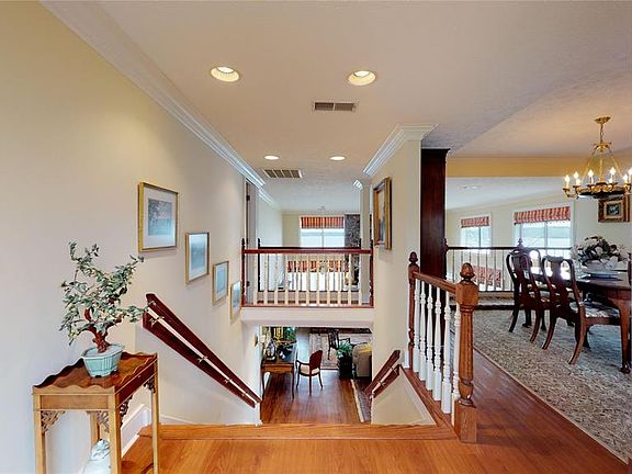 Beautiful Lake Jordan home, situated on .85 acres with approximately 240 feet of water frontage has it all. As you drive up to the home, a circular driveway and a 2 car attached carport provide lots of parking room. Walking into the front door, you are on the second level of the home. Immediately in front of you is a grand staircase going down to the living areas of the home. To the right of the foyer is a formal dining room w/ railings overlooking the large greatroom. Down the hall on the street level are all five bedrooms. There are two main bedrooms on this level and three guest bedrooms. The hall bath is conveniently located by the guest bedrooms. The main bedroom at the end of the hall is a huge space with a large walk in closet, views of the lake, & access to one of the many decks. This bedroom has an attached stubbed in bathroom ready for you to finish it out with a garden tub, double sinks, commode, & separate shower. Off this main bedroom is a large laundry room with counter space, cabinets for storage, a sink & exterior door going out to the driveway side of the home. Going down to the lower level, you step into the spacious greatroom with a gaslog fireplace with raised hearth. Flanking the fireplace are large picture windows for beautiful views of Lake Jordan. There is a small sitting area or breakfast nook off the greatroom. Attached to the greatroom is a storage room with additional storage within it that the current owners are using as a small office. There is a half bath off the greatroom going into the kitchen area. The kitchen has been updated with gorgeous granite countertops, lots of cabinets for storage, double sinks with a window over the sink for views of the lake. There is a large pantry/storage area with a door going out to the carport. Off the kitchen is a large eating area &gathering room. Outside are numerous decks, docks, a boathouse with 3 boat slips, a party deck, storage & so much more. Got to see to believe.