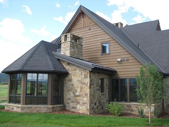 - Exterior: Wood Siding, Stone Siding