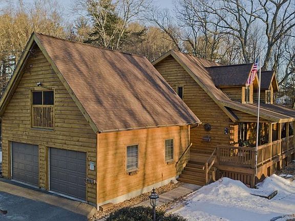 This is the home you have been waiting for! Custom built in 2006, this Log Home is a dream. Set perfectly of the land, with an oversized front porch facing west with gorgeous sunsets and picturesque grounds. Inside you will be captivated by the cathedral ceilings, natural woodwork and abundance of natural light. Enter the home through the mudroom which features a custom compass star made from Tai teak wood, laid in the center of the picture frame cherry wood floors. From the finished bonus room with loft above the garage, so the lofted family room this home has all the space you could need. The kitchen has gorgeous Cherry cabinets, granite counter and a nice sized island that seats two. The main level also has a 3/4 bath with laundry and a bedroom. The master bedroom features an office, (with on wall open to lower level) walk in closet, balcony and connects to the full bath. Be sure to come see us at the Open House on Saturday Feb 3rd 1-3pm