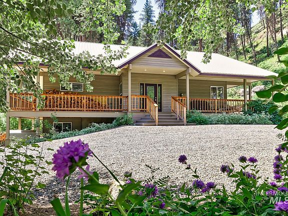 Escape to your own mountain paradise located on 5.65 acres with minimal CC&Rs! The beautifully landscaped lot offers a seasonal creek that runs through the property, privacy, level usable space, RV parking, and plenty of room to enjoy the outdoors! Inside, the main floor’s large picture windows frame sweeping views and bring the beauty of nature indoors. The spacious main-level primary suite offers direct deck access, dual vanities, a walk-in shower, a soaking tub, and an oversized walk-in closet with convenient access to the utility room. Cozy up by the custom stone fireplace in winter and stay cool in summer with ductless AC. Upstairs, two guest bedrooms each enjoy their own private covered decks. The lower level is perfect for guests or as a rental, featuring a private entry, full kitchen, living area, bedroom, full bath, and a huge walk-in closet. The oversized 3-car garage provides plenty of room for a workshop. Enjoy easy year-round access via a county maintained road!