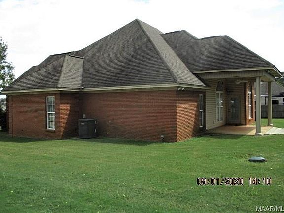 Although the home could use some updating and cosmetic repair, it makes good use of its space and has a practical open, split, floor plan. Sheltered by a wide front porch, the attractive cut glass front door gives entrance to the open foyer which introduces you to the great room and dining areas which are separated by decorative columns. These two rooms each have access to a roomy and very functional kitchen with breakfast area. The kitchen has direct access to the covered patio for ease of outdoor entertaining. Down a service hall is the laundry room / pantry, exiting to the garage, which terminates at the main bedroom suite with its dedicated bath. This bath has a double vanity, linen closet, garden tub and separate, tiled, shower. The toilet in this bath is new. On the opposite side of the house, across the great room are 3 additional bedrooms that share a full central bath. These bedrooms have roomy double doored closets and, along with the main bedroom, have new carpet.